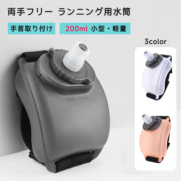 両手フリー ランニング 水筒 手首取り付け 200ml 小型 軽量 自転車用 食品グレード シリコン 噛んで飲める PP5 BPAフリー 水分補給 携帯 ポータブル スポーツ 密閉 水漏れ防止 弾性バンド 調節可能 防塵カバー